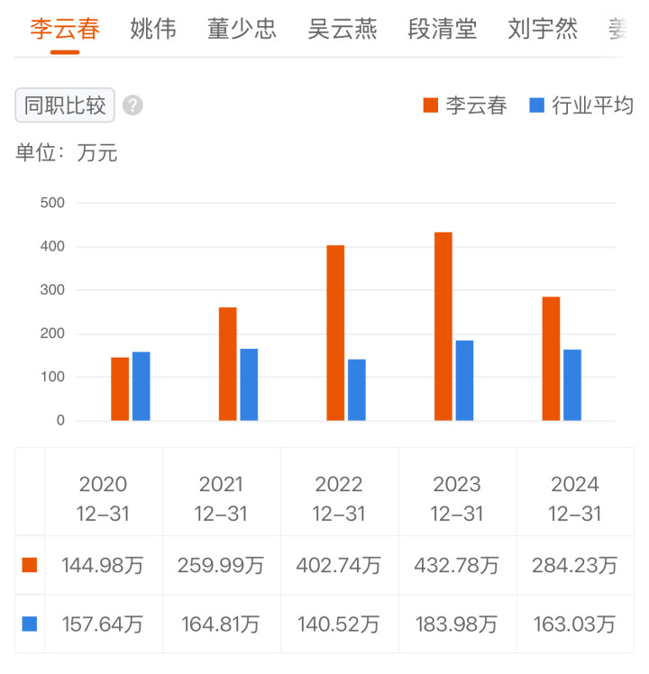 公司总裁姚伟薪资为183万元,较上年的同期252万元也略有下滑;公司非独立董事姜润生薪酬则为261万元,上年同期则为372万元。公司副董事长董少忠薪酬为204万元,上年同期则为253万元。